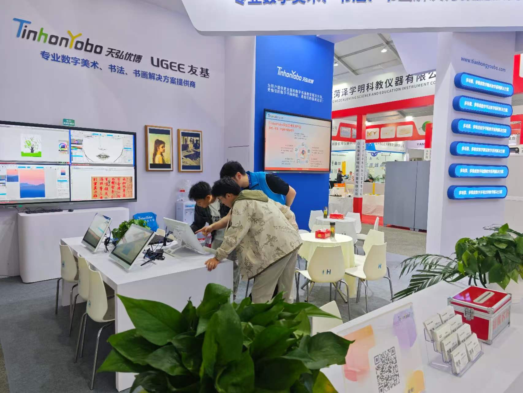 在本届展示会,我们重点推出了“TinhonYobo天弘优博”数字美术、书法、基础动漫、书画等专业美育教学系列解决方案,为期三天,吸引了大量用户、集成商及专家们驻足体验、深入交流,获得广泛好评!